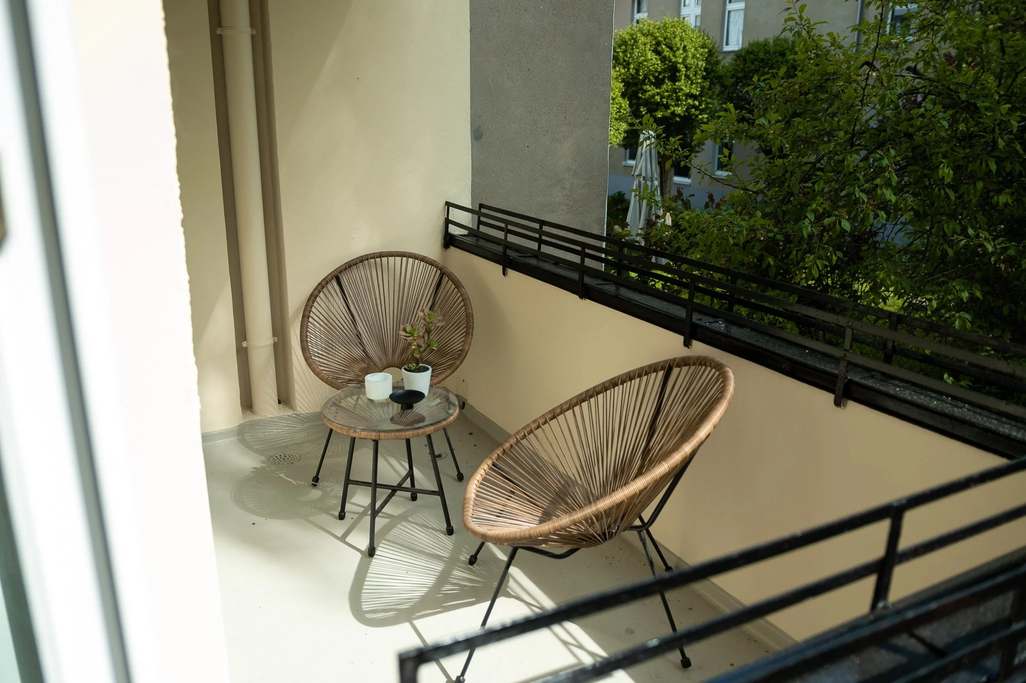 Die Cranachstraße mit ihren diversen Cafés, Restaurants und Läden ist nur einen Katzensprung entfernt.